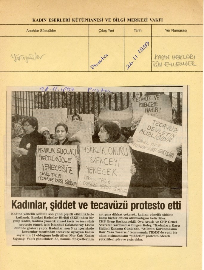 Gazete Kupür Koleksiyonu, 1990 yılında kuruldu ve bugün içerdiği klasör sayısı 650’ye ulaştı. (Klasör başına ortalama 250 adet kupürden toplamda 162.500 adet gazete kupürü) Okura kapsamlı ve derinlikli bir okuma olanağı sağlamak için, günlük gazetelerin taranmasıyla kesilen kupürlerin seçiminde, toplumsal cinsiyet duyarlılığına ve kadın konusunda içeriğin kapsayıcılığına özen gösterilerek, kadın bakış açısının korunmasına titizlikle dikkat edildi. Ancak yıllar geçtikçe, koleksiyonun hem çeşitli konu başlıklarıyla sınıflandırılmasının güncellenmesi hem de arşivci- kütüphanecimizin saptamasıyla, klasörlerin raflara sığmaması; maliyetlerinin artması, kupürlerin konduğu plastik zarfların artan maliyetleriyle birlikte çevre kirliliğine yol açması gibi teknik sorunlara getirdiği alternatif çözüm önerileri, koleksiyonla ilgili gönüllü desteğinin katkılarıyla uzun soluklu bir çalışmanın zorunluluğunu ortaya koydu.